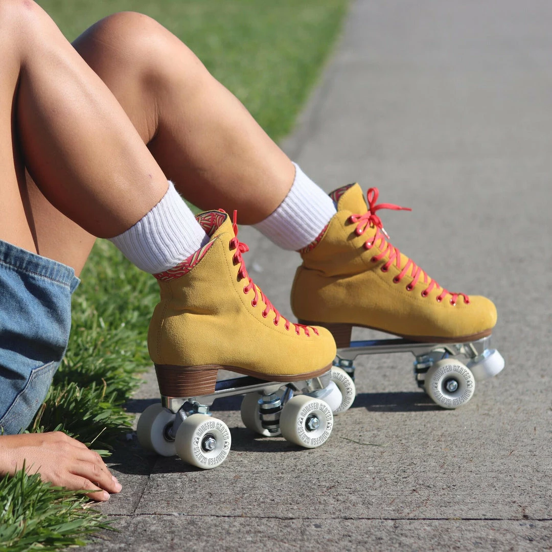 The colours of Birak are encapsulated in the mustard yellow suede outer with coral pink laces and eyelets. The skate’s lining was a collaboration with Perth’s Kamsani Bin-Salleh (@Kambarni). Kam is a Nimunburr/Yawuru/Ballardong artist who uses the natural world to inspire his work and has provided his abstract interpretation of this Noongar season.