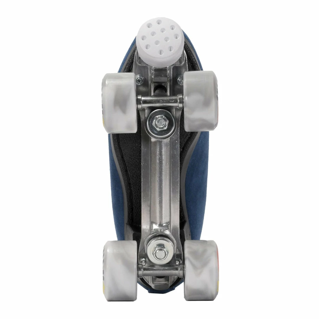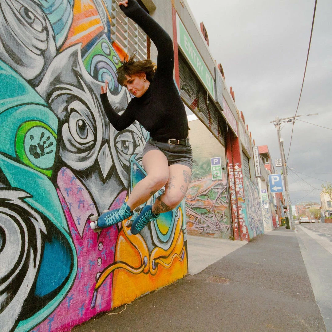 The imperial blue suede outer highlights the turquoise laces, eyelets, and serpentine inspired lining that was designed by Cath herself! The boot is padded with our cushy foam lining to deliver supreme comfort right out of the box. The Blue Viper comes with our hybrid Chiller Wheels which are the perfect compound for the skater who wants to roll from the street to the skatepark with ease.Â