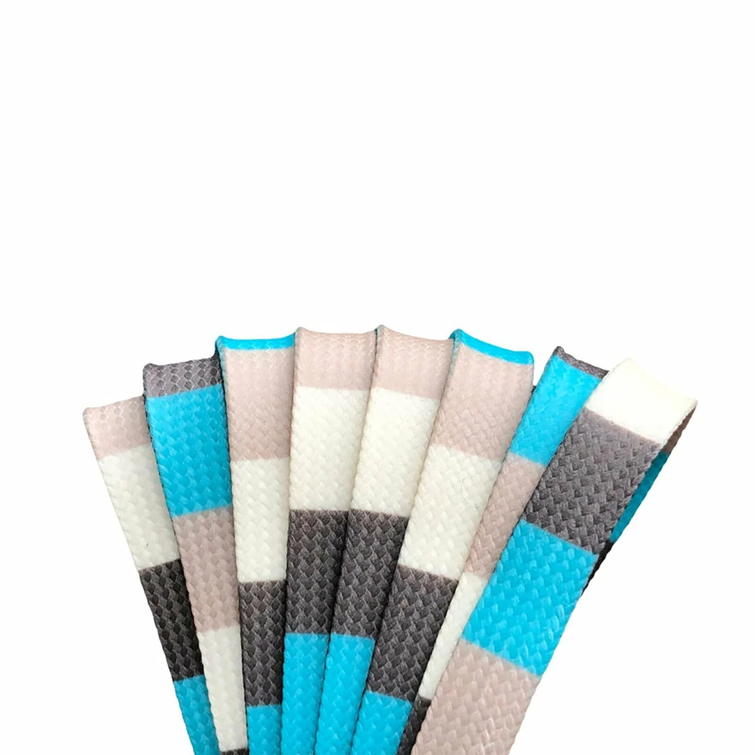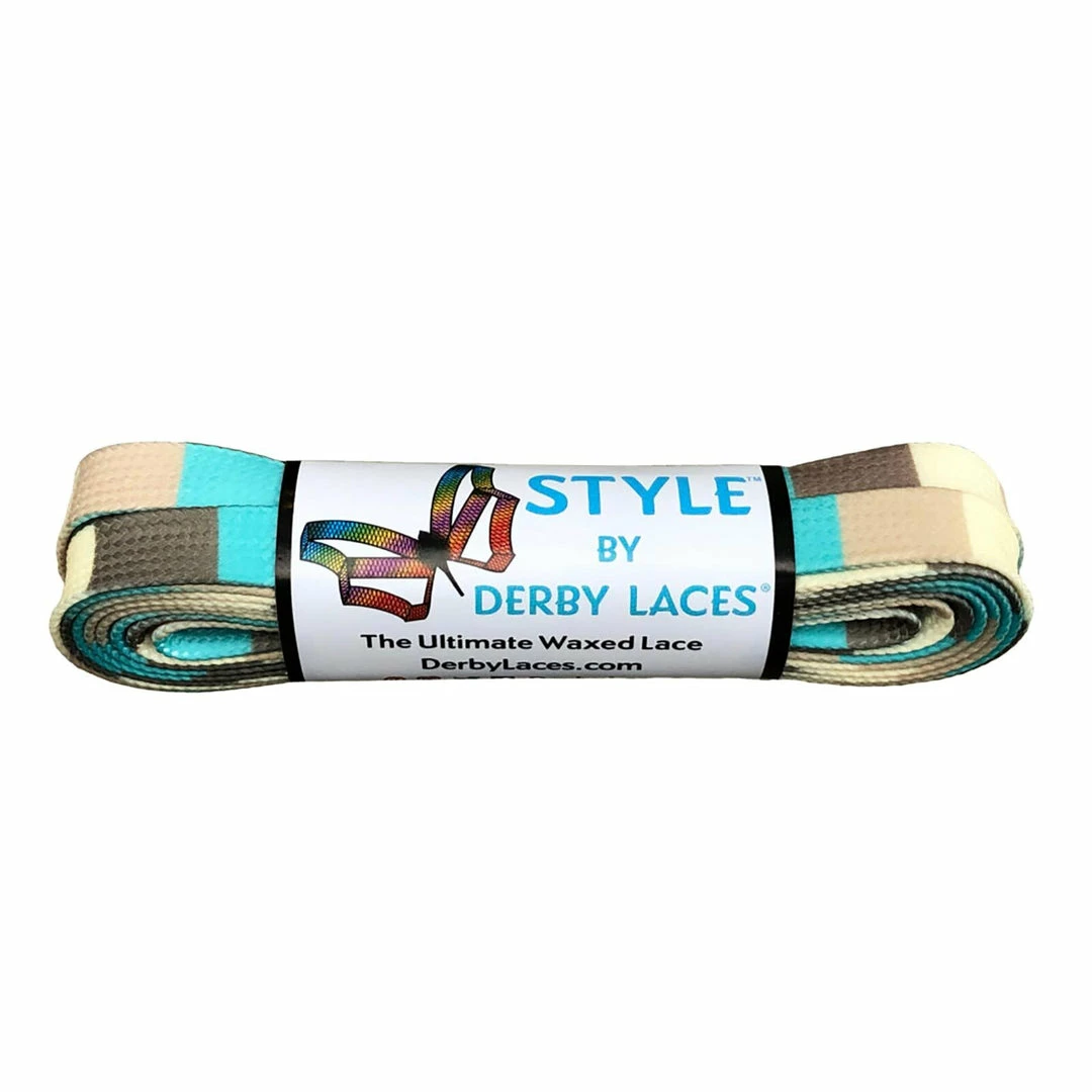 Derby Laces Style in Winter Block are 10mm wide flat skate laces with super strong fibers, high performance wax, and molded tips suitable for high performance sports and boots. Sold as a pair.