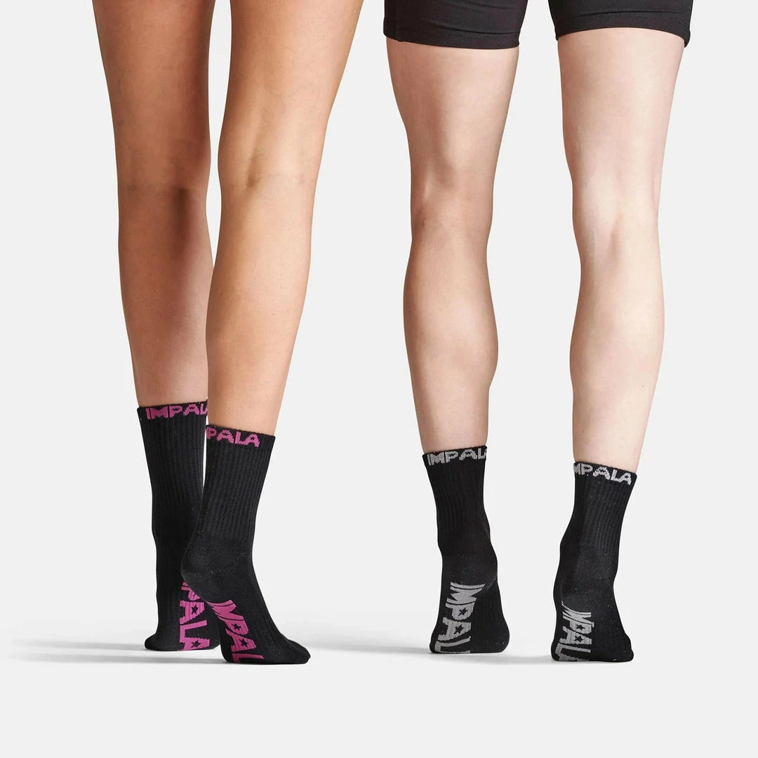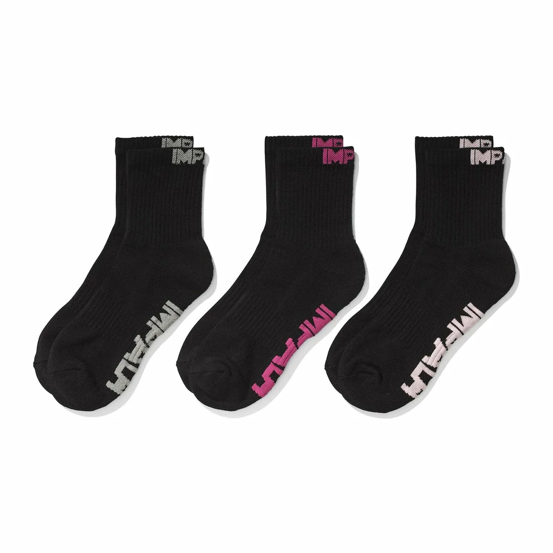 Impala Everyday Socks by Impala Skate. The pack includes three pairs of black everyday crew socks featuring assorted logo colours.