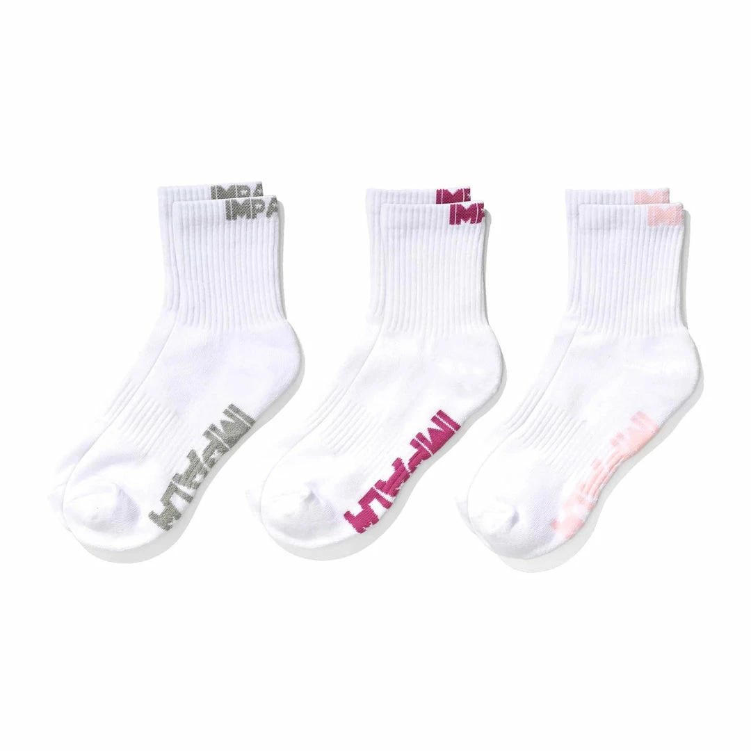 Impala Everyday Socks by Impala Skate. The pack includes three pairs of white everyday crew socks featuring assorted logo colours.
