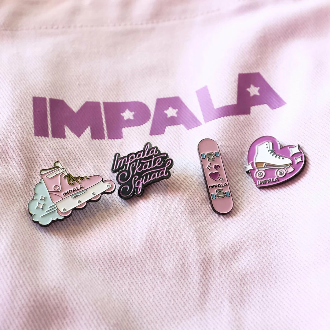 Customise your bag, clothing and accessories with this custom 4-Pack Impala Skate Pin Set.