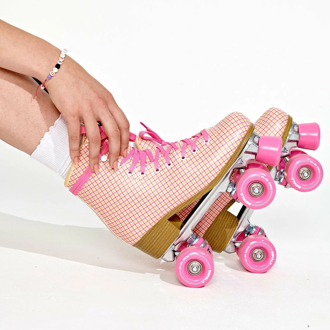 Impala Rollerskates in Pink Tartan are the perfect entry-level / intermediate-level recreational quad skates that you can comfortably roll around in all day long!