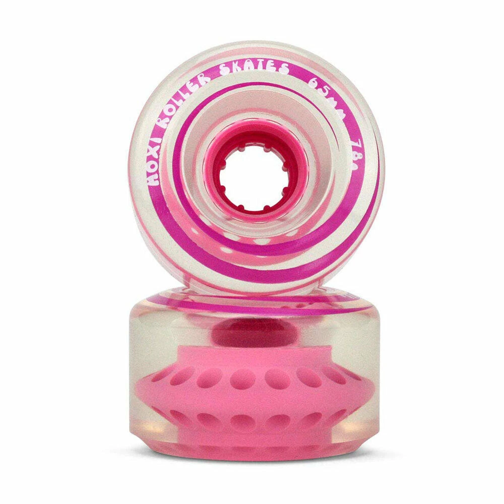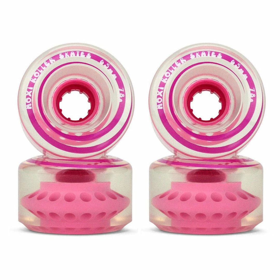 The Moxi Gummy Pink urethane outdoor wheels are gummy like their name and make riding anything from sidewalk to pavement smooth. Moxi Gummy Wheels are durable and come in a variety of different colours.