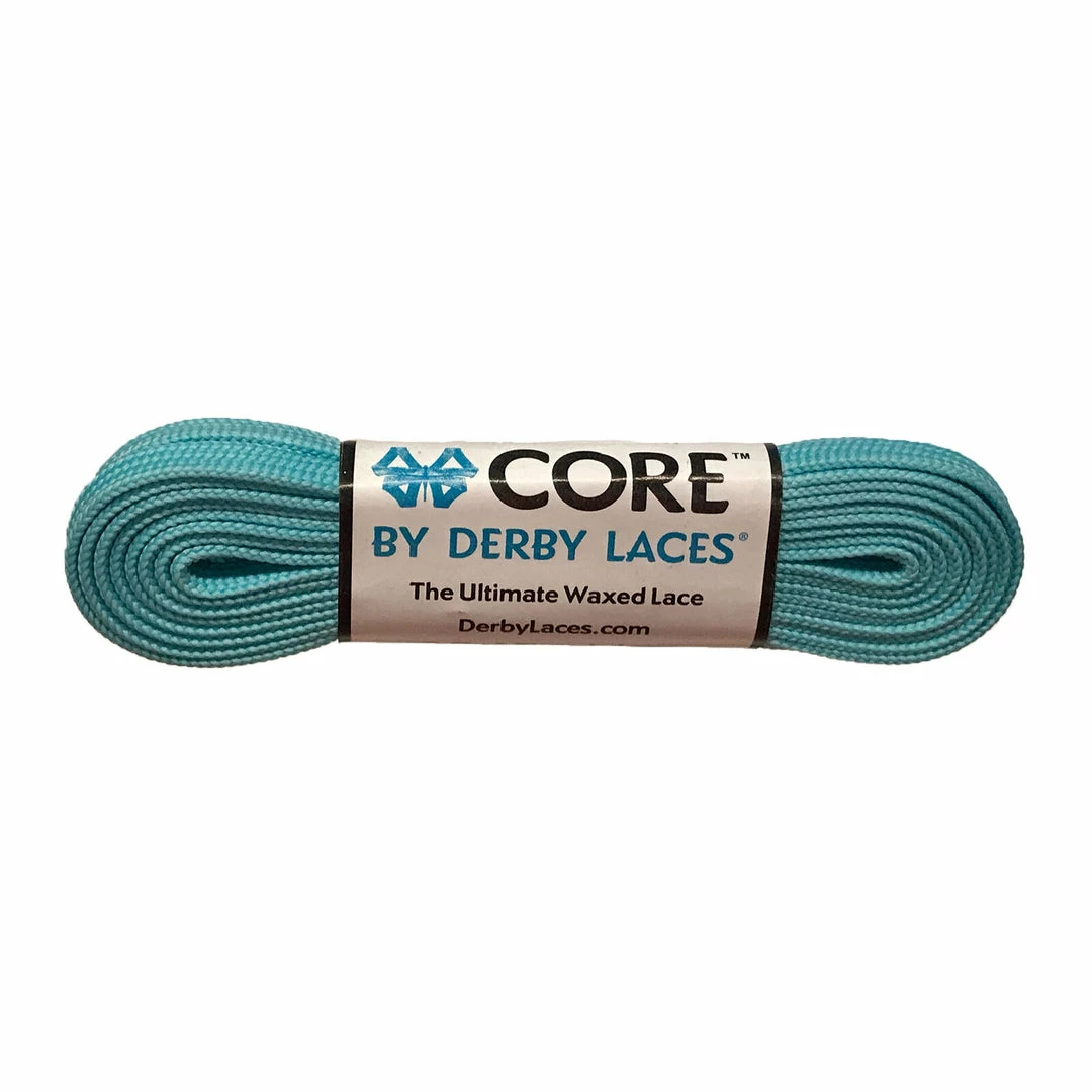 Derby Laces Core / Aqua Spray are 6mm wide shoe laces with super strong fibers, high performance wax and molded tips. Suitable for shoes, boots, roller skates and other high performance lace needs. Sold as a pair.