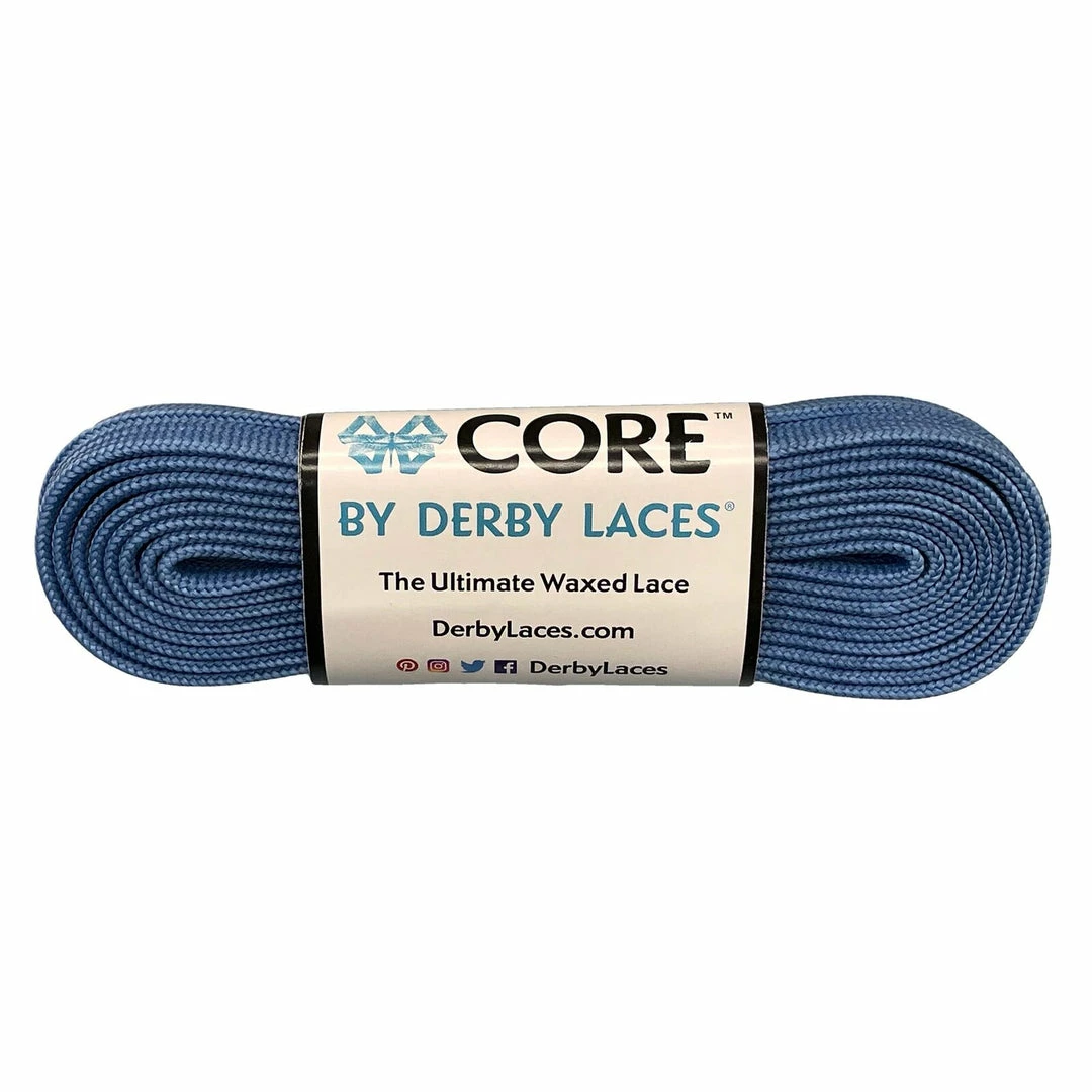 Derby Laces Core / Denim Blue are 6mm wide shoe laces with super strong fibers, high performance wax and molded tips. Suitable for shoes, boots, roller skates and other high performance lace needs. Sold as a pair.