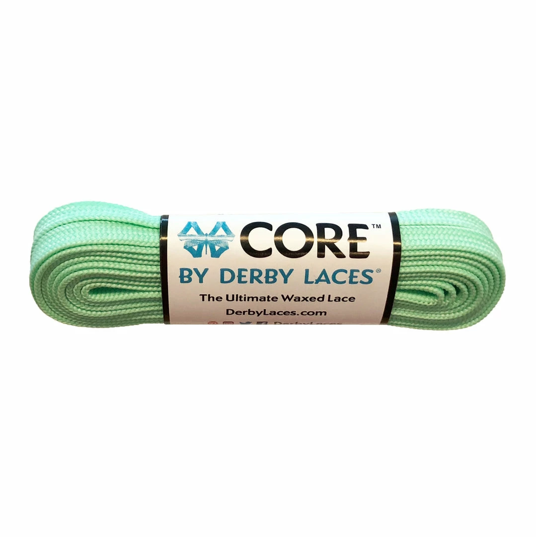 Derby Laces Core / Honeydew Green are 6mm wide shoe laces with super strong fibers, high performance wax and molded tips. Suitable for shoes, boots, roller skates and other high performance lace needs. Sold as a pair.