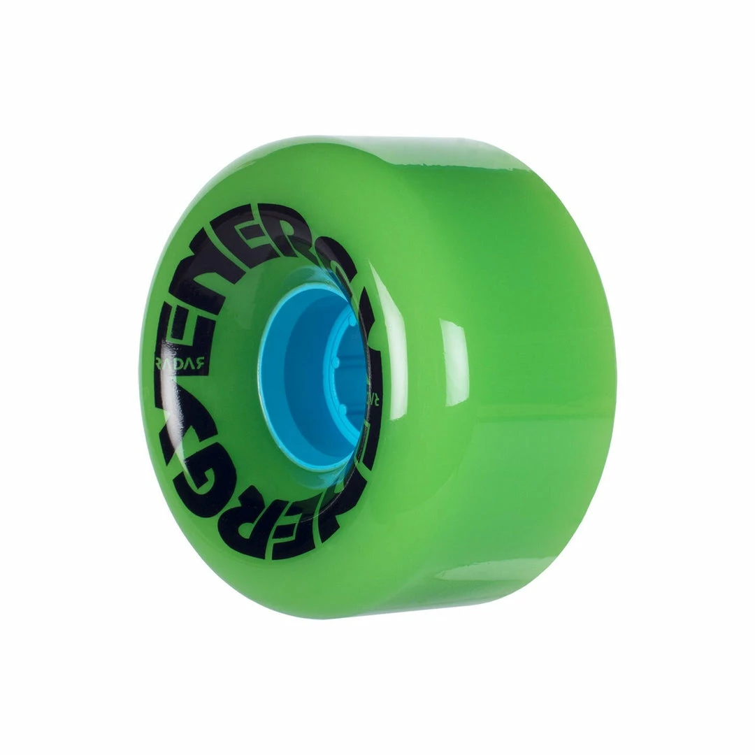 The Lime Green Radar Energy 65 Wheels feature the finest outdoor urethane available for outdoor skating. The wheels are designed to glide smoothly over rough surfaces and small debris. The Energy 65s are fast and long-lasting.